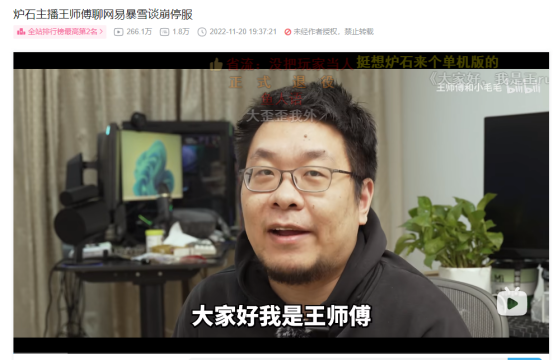 爐石主播兼職美食探店的王師傅在回應(yīng)的視頻中說(shuō)“不在乎暴雪能不能找到新的代理,真的無(wú)所謂”、“沒(méi)想到視頻要從副業(yè)變成主業(yè)了”。