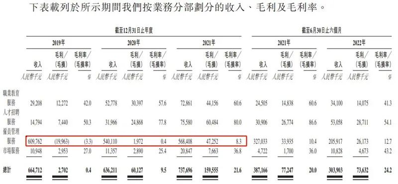 人事成本,正是為外包服務相關的人工成本。這一成本目前也并沒有得到緩和,在今年上半年已經高達1.7億元,占比仍為8成左右。居高不下的成本勢必導致毛利率低,2019年至2021年及2022年上半年分別為-3.3%、0.4%、8.3%及12.7%。