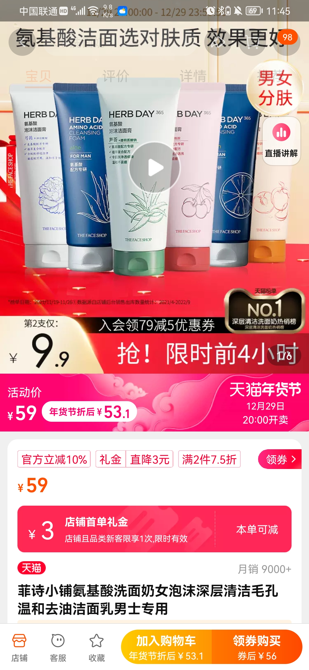 在菲詩小鋪天貓旗艦店里,目前銷量最高的產(chǎn)品也是氨基酸潔面乳,月銷量達(dá)到了9000件。