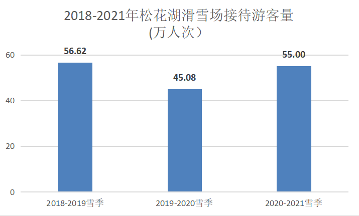 “2018-2019年”到“2020-2021年”的三個(gè)雪季,松花湖滑雪場(chǎng)接待人次分別達(dá)到56.62萬(wàn)人次、45.08萬(wàn)人次和55萬(wàn)人次。