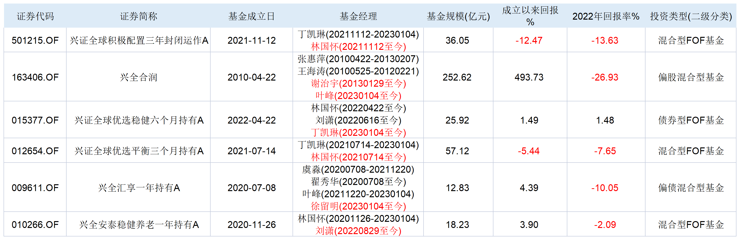 公告顯示,基金經(jīng)理丁凱琳分別卸任興全優(yōu)選進取三個月持有混合FOF、興證全球積極配置三年封閉混合FOF-LOF、興證全球優(yōu)選平衡三個月持有混合FOF。此前,丁凱琳和林國懷共同管理上述3只基金。