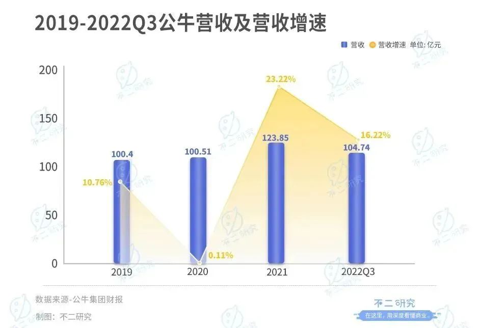 細究公牛財務數(shù)據(jù),「不二研究」發(fā)現(xiàn),其業(yè)績增速自2017年開始下滑,隱憂逐漸浮現(xiàn)。