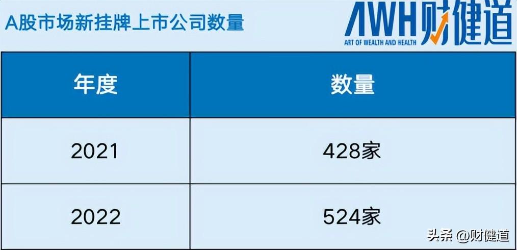 東方財(cái)富Choice數(shù)據(jù)顯示,2022年A股市場新掛牌上市公司428家,上市數(shù)量不及2021年的524家。