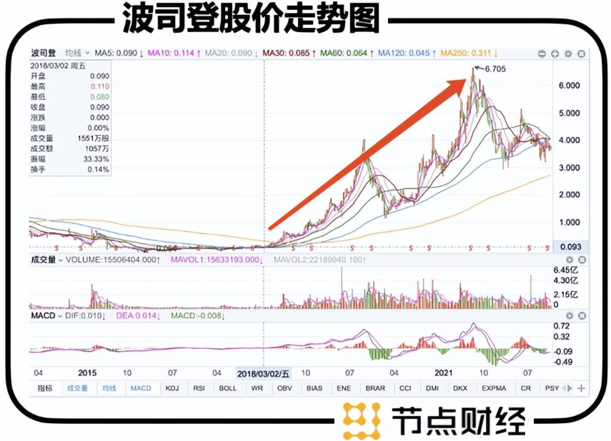 此后,波司登營收不僅重回2012年的90億元高位,而且接連突破百億、150億元大關(guān),成為真正的民族羽絨服品牌。公司股價(jià)也自君智咨詢服務(wù)后從不到0.5元最高漲至6.7元翻了12倍多。