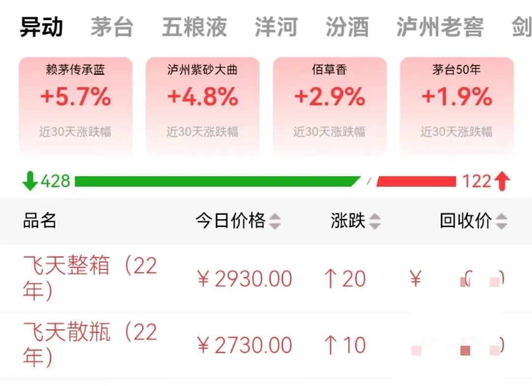 白酒主流產(chǎn)品價(jià)格下滑的情況到底如何?根據(jù)某酒商交易平臺(tái)最新監(jiān)控?cái)?shù)據(jù)顯示,截止到發(fā)稿前,過去30天內(nèi),在該平臺(tái)入庫的500余款主流產(chǎn)品中,有430余款出現(xiàn)了不同幅度的價(jià)格下滑,價(jià)格上漲的僅有120余款,下跌占比超7成。
