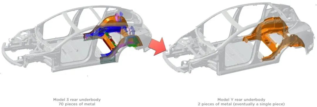 在馬斯克的宣傳下,如果這些能夠實現(xiàn),將可以替代原來的370多個零部件,實現(xiàn)整車減重10%,續(xù)航提升14%,同時降低生產成本、大幅加快生產節(jié)拍。在美國得州工廠,特斯拉已經(jīng)開始生產一體成型的前底板,電池包也可與車身前后部一體化成型。