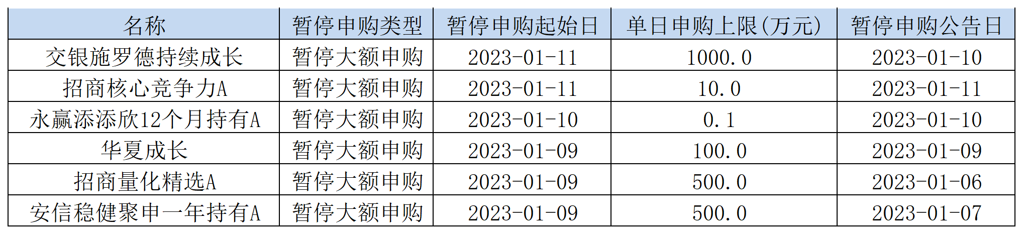 1月11日,何帥管理的交銀施羅德持續(xù)成長(zhǎng)、朱紅裕管理的招商核心競(jìng)爭(zhēng)力兩只基金分別發(fā)布了限購(gòu)公告。其中,交銀施羅德持續(xù)成長(zhǎng)單日限購(gòu)額度為1000萬(wàn)元,招商核心競(jìng)爭(zhēng)力單日限購(gòu)額度為10萬(wàn)元。