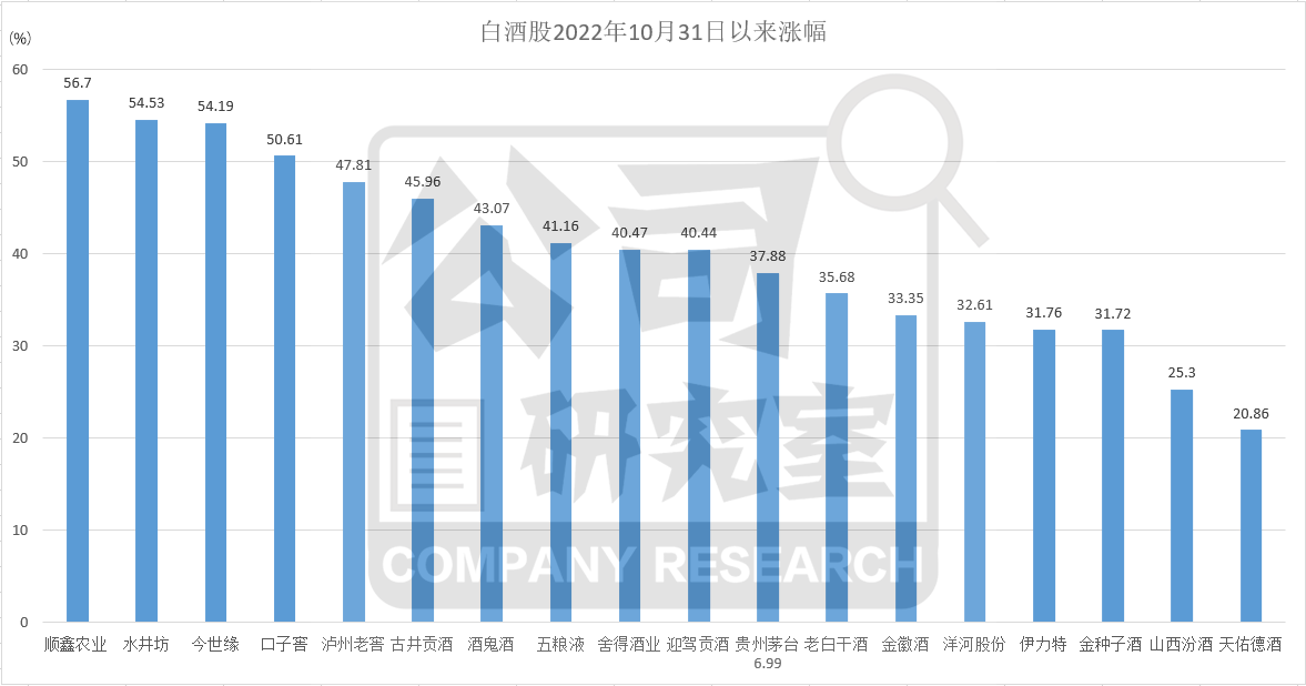 其實(shí),不僅是白酒板塊元旦前后的上漲,就是A股自2022年10月31日以來的這波反彈,整體上都屬于超跌后的估值修復(fù)。只不過白酒股下半年跌得最狠,反彈起來也更猛,又趕上春節(jié)消費(fèi)旺季,返鄉(xiāng)人流不再受限制,從而給市場帶來這個春節(jié)白酒消費(fèi)同比增長的更好預(yù)期。