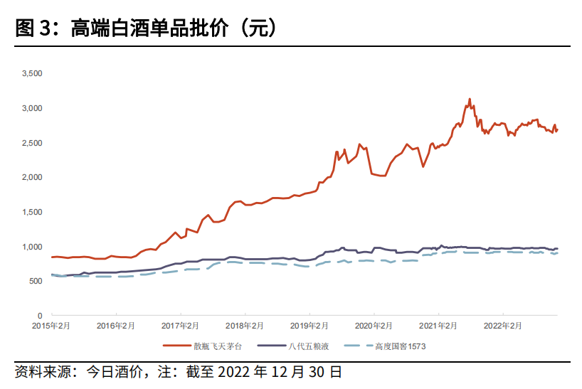 這一點(diǎn),從高端白酒單品批價近期走勢上也可以看出,以飛天茅臺為代表的極品白酒價位已經(jīng)在相對高位企穩(wěn)。