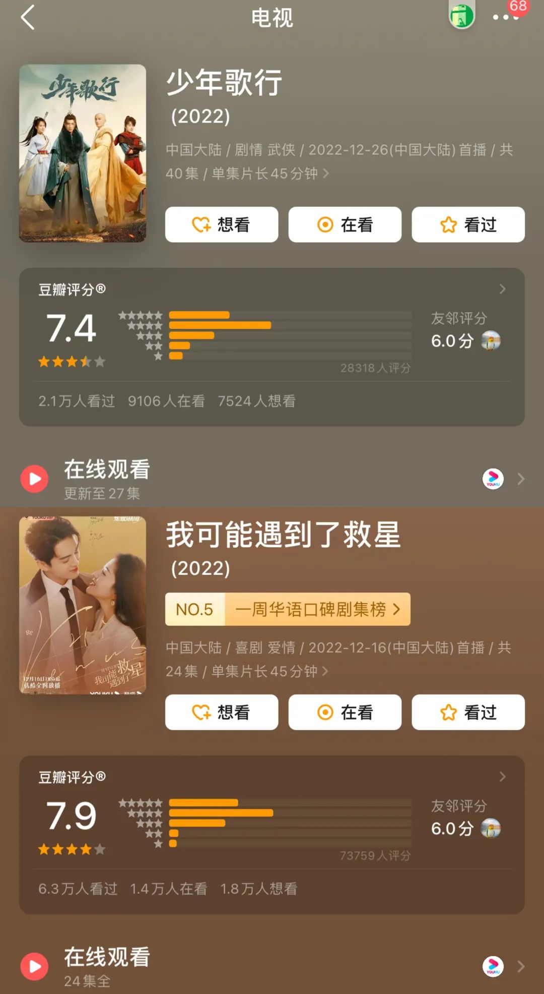 就主創(chuàng)陣容而言,優(yōu)酷目前主打的兩部開(kāi)年大戲《少年歌行》《我可能遇到救星了》較愛(ài)奇藝遜色不少,但讓人驚喜的是,這兩部劇不僅為優(yōu)酷賺到了口碑,也創(chuàng)造了熱度。