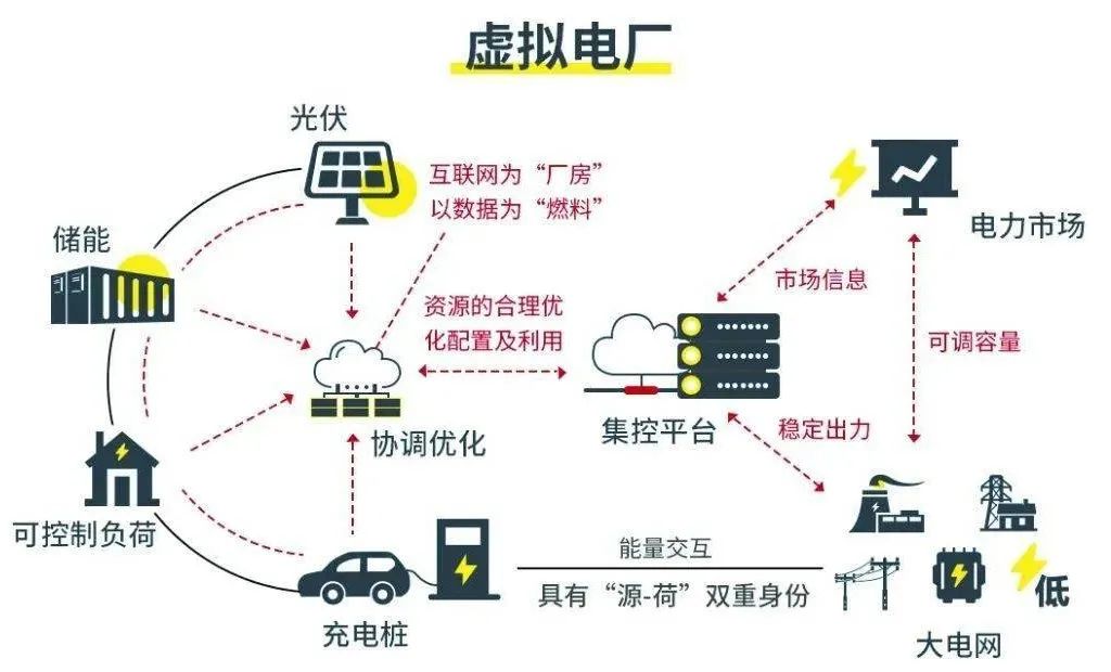 “虛擬電廠”是實現(xiàn)智能配電網(wǎng)的重要技術(shù)之一,指過先進(jìn)信息通信技術(shù)和軟件系統(tǒng),把分散在電網(wǎng)中的電源、負(fù)荷、儲能資源,如光伏/風(fēng)電設(shè)施、戶用儲能、電動車、充電樁、空調(diào)等整合起來,合并作為一個特別的電廠參與電網(wǎng)運行。