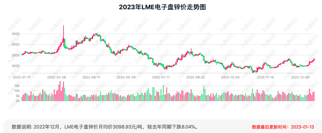 不過,紫金礦業(yè)在公告中也提示道,“火燒云鉛鋅礦權(quán)益金及后續(xù)投資金額大,對公司將產(chǎn)生較大資金壓力;礦區(qū)位于人煙稀少的高海拔高寒地區(qū),基礎(chǔ)設(shè)施差,將給項目的開發(fā)建設(shè)帶來嚴峻挑戰(zhàn)。公司參與本次競拍能否成功存在不確定性。” 鋅是重要的有色金屬原材料,在有色金屬的消費中,鋅僅次于銅和鋁。廣泛用于汽車制造、建筑、船舶、輕工,以及用于制造干電池等。“鋅云匯”網(wǎng)站顯示,截至2023年1月13日,鋅價為3320元/噸,去年同期為3561.5元/噸,下降了7.27%。