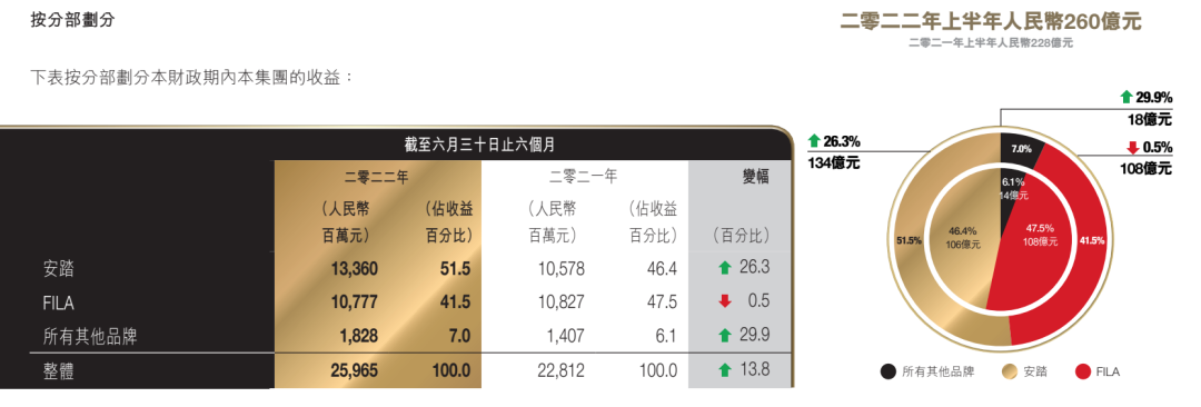 △2022年上半年安踏集團(tuán)營收狀況 圖片來源:安踏集團(tuán)2022年中期財報