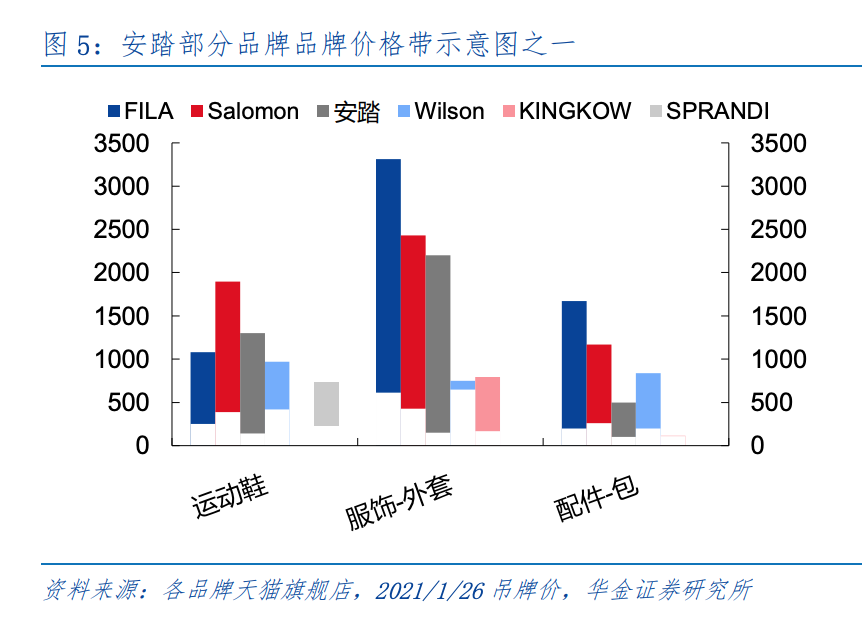 △安踏集團(tuán)旗下部分品牌價格帶示意圖 圖片來源:華金證券研報