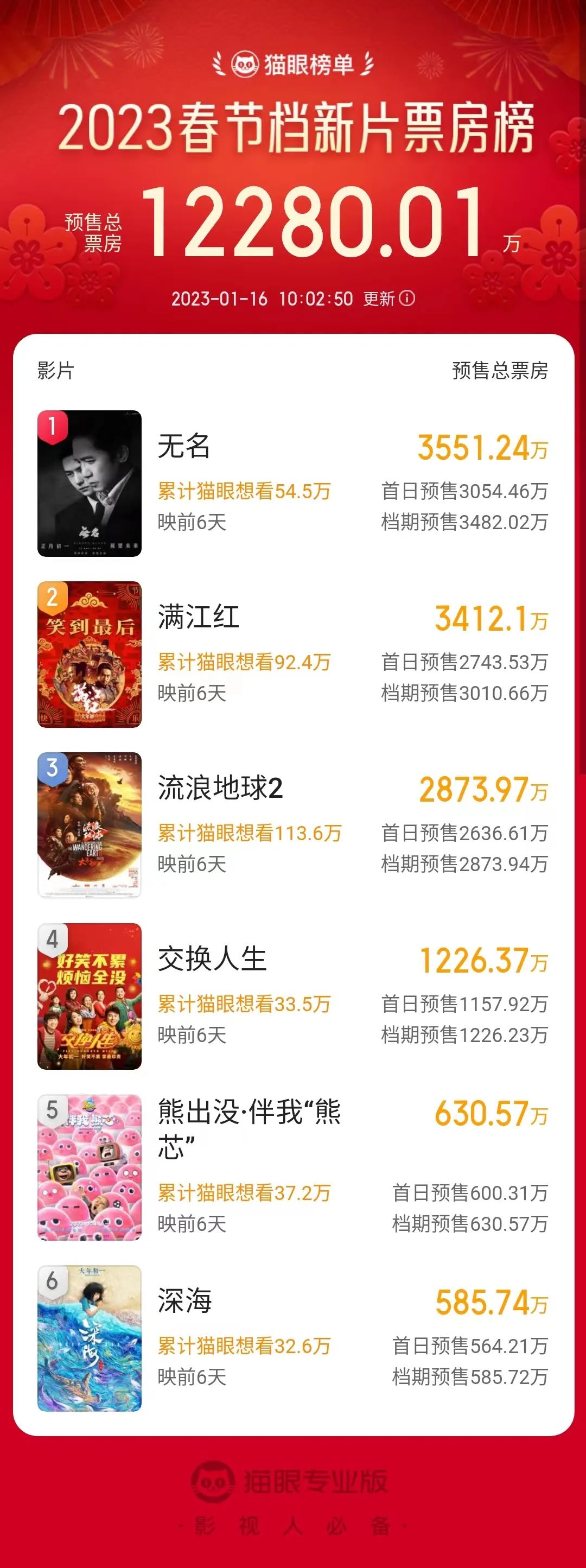 《無(wú)名》預(yù)售領(lǐng)跑,《流浪地球2》《滿江紅》更受期待
