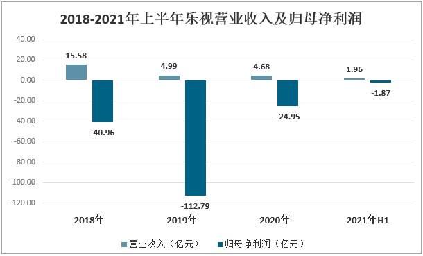 2018-2021年上半年樂(lè)視營(yíng)業(yè)收入及歸母凈利潤(rùn)