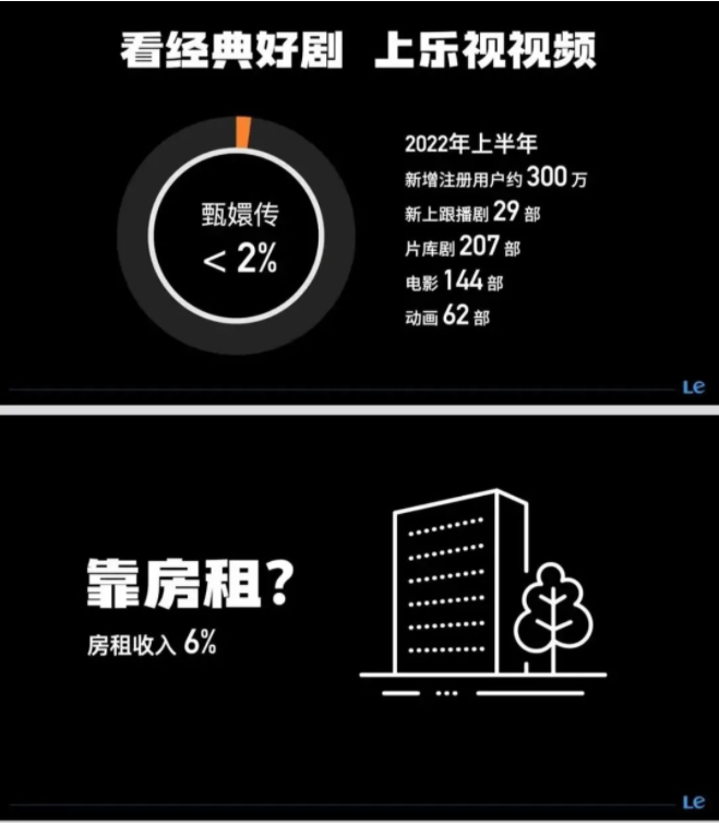2022年上半年,《甄嬛傳》帶給樂(lè)視網(wǎng)的收入不足5%,房租帶給樂(lè)視網(wǎng)的收入也只占6%