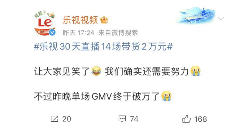 比如樂(lè)視曾開(kāi)直播想帶貨自家產(chǎn)品,也上了熱搜,可惜是“樂(lè)視 30天直播 14場(chǎng)帶貨 2萬(wàn)元”。
