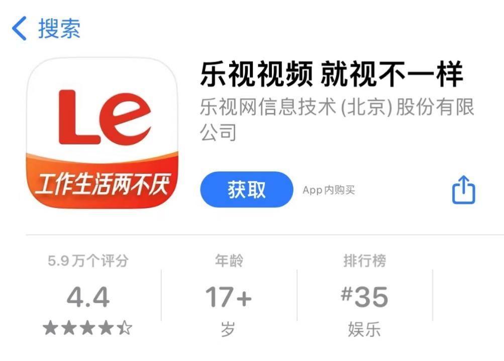 最新的樂(lè)視視頻app上的圖標(biāo)文案改為了“工作生活兩不厭”