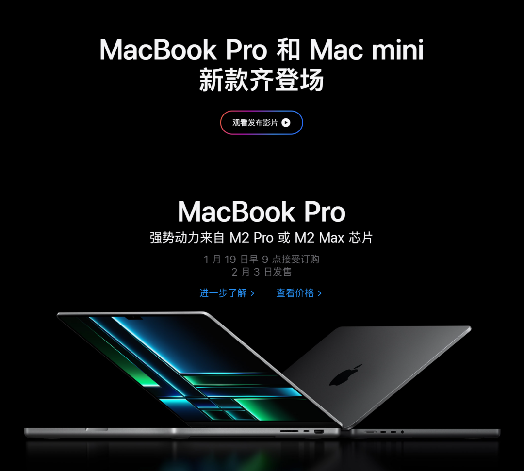 除了M2 Pro和M2 Max兩顆芯片,蘋果還一并發(fā)布了Mac mini、14英寸和16英寸的MacBook Pro等多款Mac電腦新品。