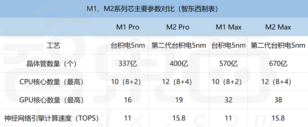 在工藝方面,M2 Pro采用了臺積電第二代5nm工藝,蘋果這次將400億個晶體管塞進了這顆“指尖”大小的芯片里。與之相比,M1 Pro的晶體管數(shù)量為337億個,大約增加了18.6%。
