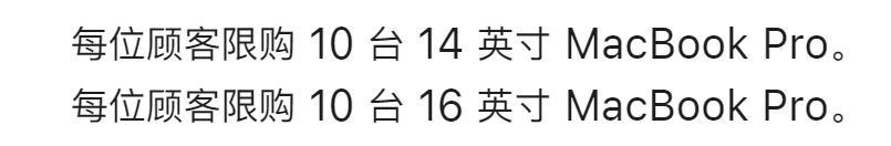 頂配版新款16英寸MacBook Pro國行售價哦對了,蘋果還貼心地提示道:“每位顧客限購10臺?!保ú灰澬呐叮。?/em>