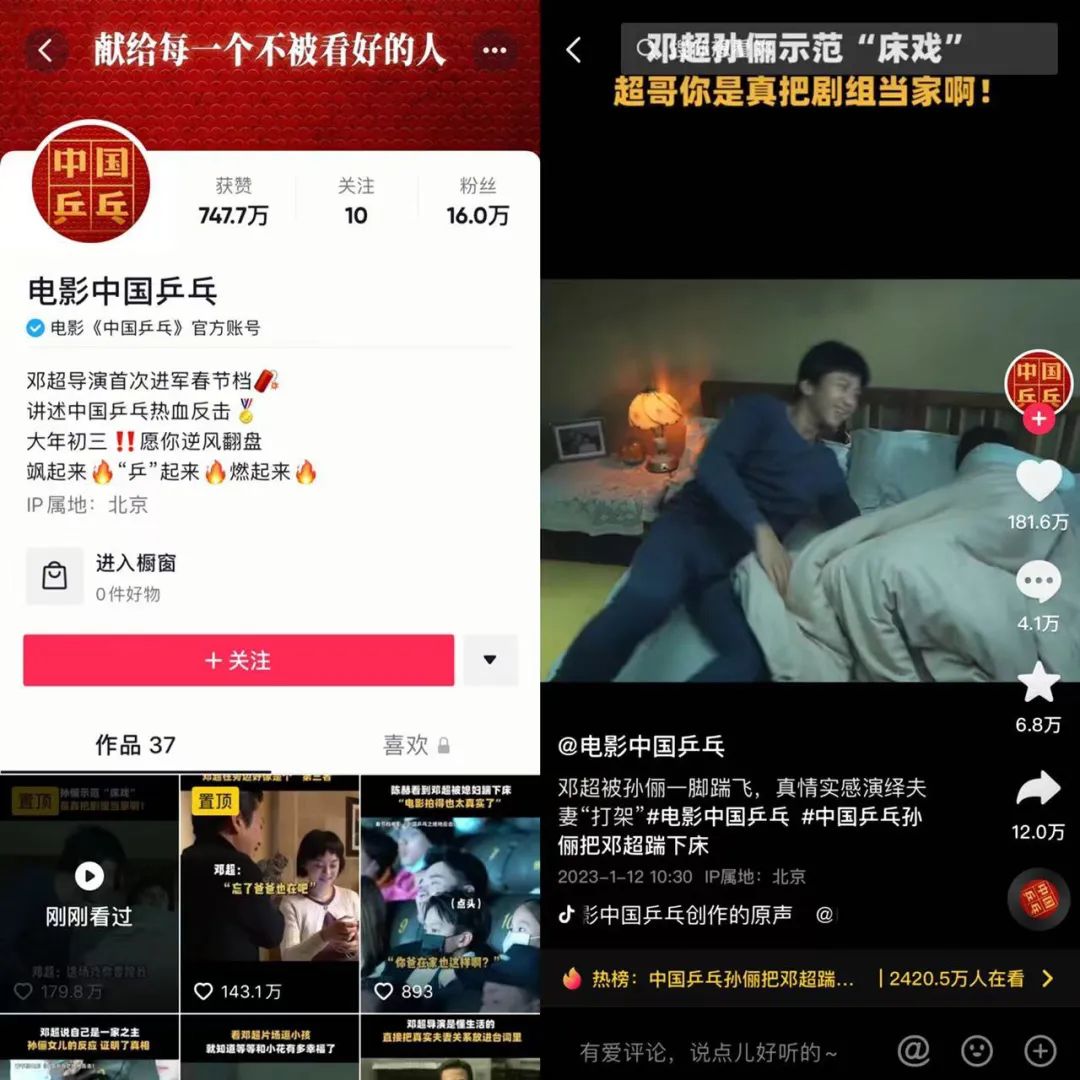 《中國乒乓之絕地反擊》的墊底是很多人沒料到的。作為恒業(yè)和愛奇藝合作的首部重磅片,找來了鄧超、俞白眉再攜手。業(yè)內(nèi)普遍比較看好,入局資本多達(dá)32家。該片在短視頻上的宣傳也很賣力,主打鄧超、孫儷夫婦的片場(chǎng)互動(dòng),收獲了百萬贊。