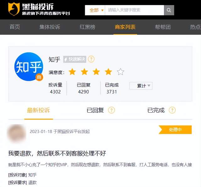 此外,知乎正陷入口碑信譽(yù)下滑的尷尬境地?!缸訌椮斢^」注意到,在黑貓投訴平臺上,涉及知乎的投訴合計高達(dá)4302條,而網(wǎng)友們對知乎的投訴主要為自動續(xù)費(fèi)、客服服務(wù)差、提前取消會員資格及不退款等。