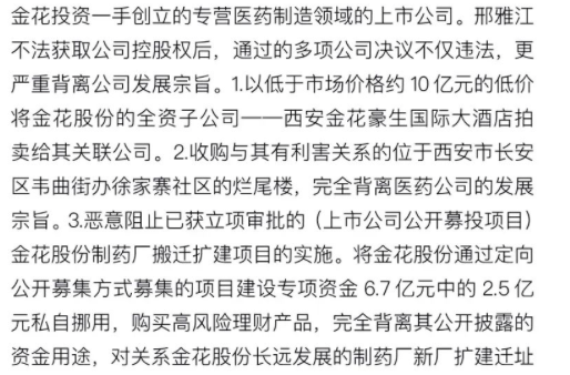身份登場,最終通過股權(quán)競拍、二級市場增持等方式,從前陜西省首富手中拿下金花股份實(shí)控權(quán)后,同為陜西豪門的邢氏家族,正通過剝離虧損資產(chǎn)等方式,對公司業(yè)務(wù)進(jìn)行重新梳理。