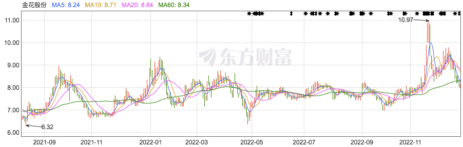 有意思的是,這段時間內(nèi),金花股份股價基本處于8元/股以下位置,直到11月中旬才出現(xiàn)一波上漲。