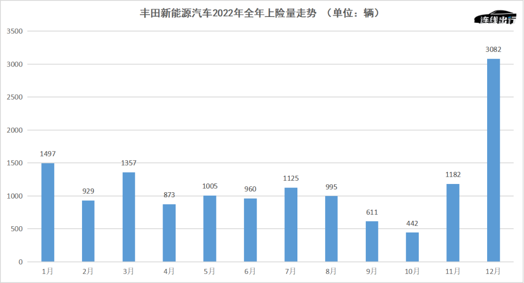 豐田新能源汽車2022年全年上險量走勢,數(shù)據(jù)來源于乘聯(lián)會,連線出行制圖