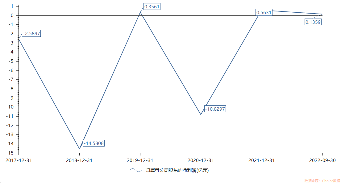 2017年以來,榮聯(lián)科技維持著賺一年虧一年的態(tài)勢,但賺少虧多。2018年-2021年,公司分別實(shí)現(xiàn)歸屬于上市公司股東的凈利潤-14.58億元、0.36億元、-10.83億元、0.56億元。2022年前三季度,公司實(shí)現(xiàn)凈利潤1359.06萬元。