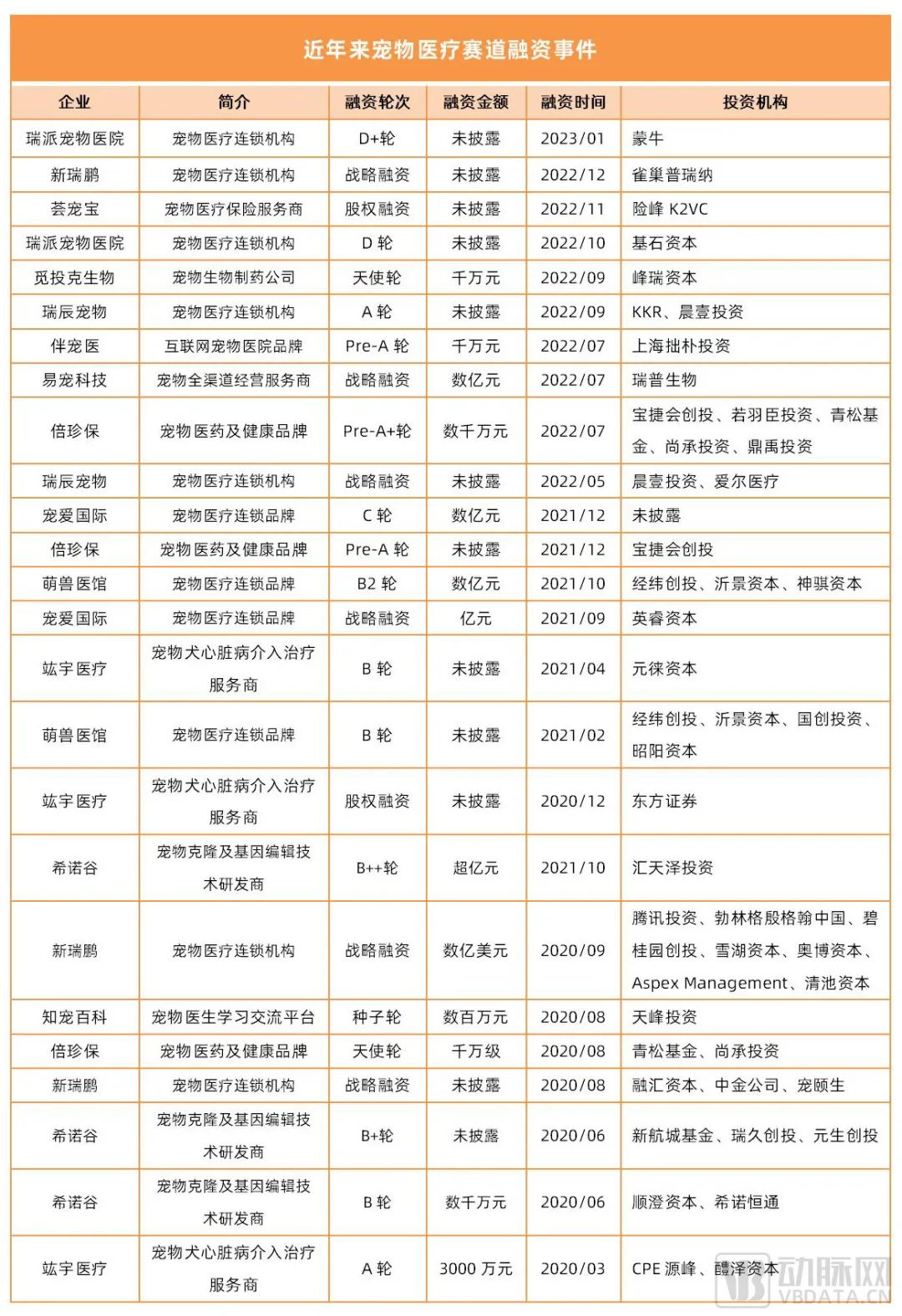 寵物醫(yī)療近年融資情況 動脈網制圖