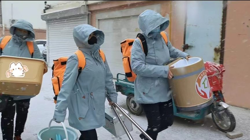 兩個小時忙下來,孔丹丹、鄒蓉、杜靜渾身汗?jié)?。她們填完反饋表,拜了個早年,被老人的家屬們拉著拽著,塞幾樣年貨,才又搬著浴缸下樓,繼續(xù)奔赴下一家。