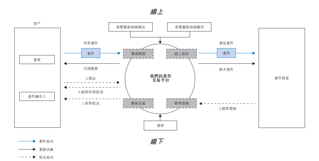 2020年、2021年與2022年前九個月,委聘泰豐文化提供畫作代理服務(wù)的藝術(shù)家總?cè)藬?shù)分別為94、128及175名,收藏者分別為1936、2746及3096名。