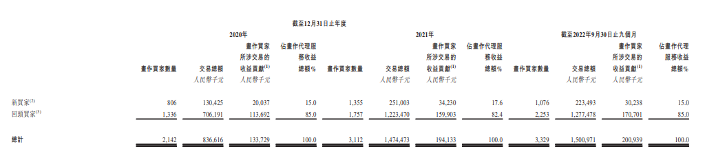 2020年、2021年與2022年前九個月,分別有2142、3112及3329名買家通過泰豐文化購買當(dāng)代國畫。