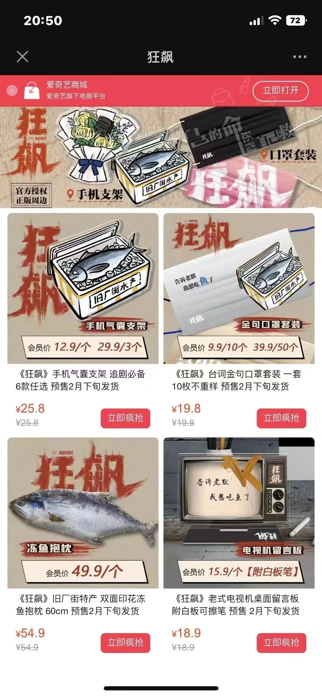 像這次《狂飆》爆火之后,平臺(tái)也迅速出了IP的周邊,承接消費(fèi)者對(duì)于這部劇的喜愛(ài)情緒,讓這些周邊商品融入消費(fèi)者的日常生活中,延續(xù)了劇集的商業(yè)生命力。