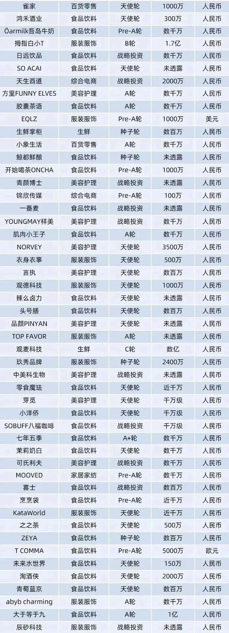 多個(gè)行業(yè)“冷遇”。其中,美容護(hù)理行業(yè)2022年全年融資共48起,較2021年減少了37起;服裝行業(yè)30起,較2021年減少了17起;母嬰行業(yè)9起,較2021年減少了50%。