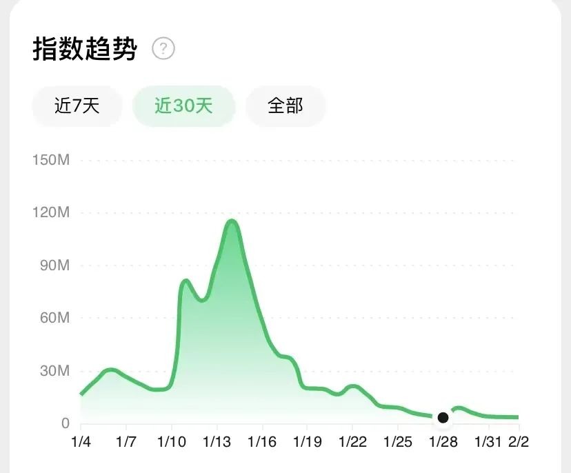 不僅僅是口碑滑坡,自前兩集的全網(wǎng)熱議之后,《中國奇譚》的熱度也在迅速消退。B站站內(nèi)每一集的評論數(shù)都在穩(wěn)步遞減,第六集的討論度只剩下第一集的十分之一,微信指數(shù)更是跌到了巔峰時的十五分之一。隨著春節(jié)檔影片的“神仙打架”與《狂飆》的“全民上頭”,《中國奇譚》不到一個月就淪為了“過氣頂流”。