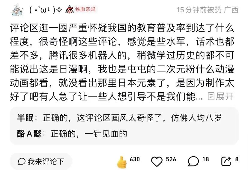 盡管《大理寺日志》被視為近年來國漫的代表作之一,然而卻始終未能大規(guī)模出圈。在騰訊視頻評論區(qū),前排的評論都是粉絲在向路人觀眾科普這不是“日漫風(fēng)”。畢竟,在普通觀眾眼中,或許只有《斗羅大陸》《斗破蒼穹》這樣的網(wǎng)文漫改才是純正國漫。雖然《中國奇譚》有望拓展觀眾對于中國動畫的認(rèn)知邊界,但能改變的十分有限。