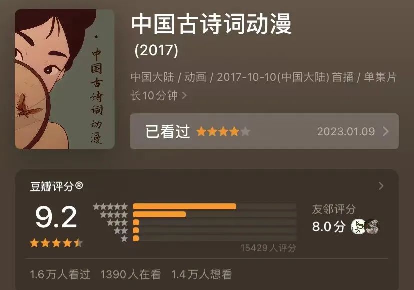 實際上,近年來國產(chǎn)動畫一直不缺優(yōu)質(zhì)的短片,各大美術(shù)院校的畢業(yè)作品也時常會有驚艷之作。在《中國奇譚》之前,由嘉定區(qū)委宣傳部投資出品的《中國古典詩詞動漫》豆瓣評分就高達(dá)9.2分?!吨袊孀T》是蓄勢已久的國產(chǎn)動畫短片的一次徹底出圈,意味著在短片領(lǐng)域,國產(chǎn)動畫在技術(shù)層面早已不輸國外,水墨、剪紙、黏土、定格等風(fēng)格也已經(jīng)百花齊放,然而卻未能實現(xiàn)從動畫短片到動畫長片的驚險一躍。一旦涉及到完整宏大世界觀的構(gòu)建,神話傳說的重新演繹,種種問題就會暴露無疑,畢竟僅靠絢麗畫風(fēng)、古典意境很難讓觀眾撐到最后。