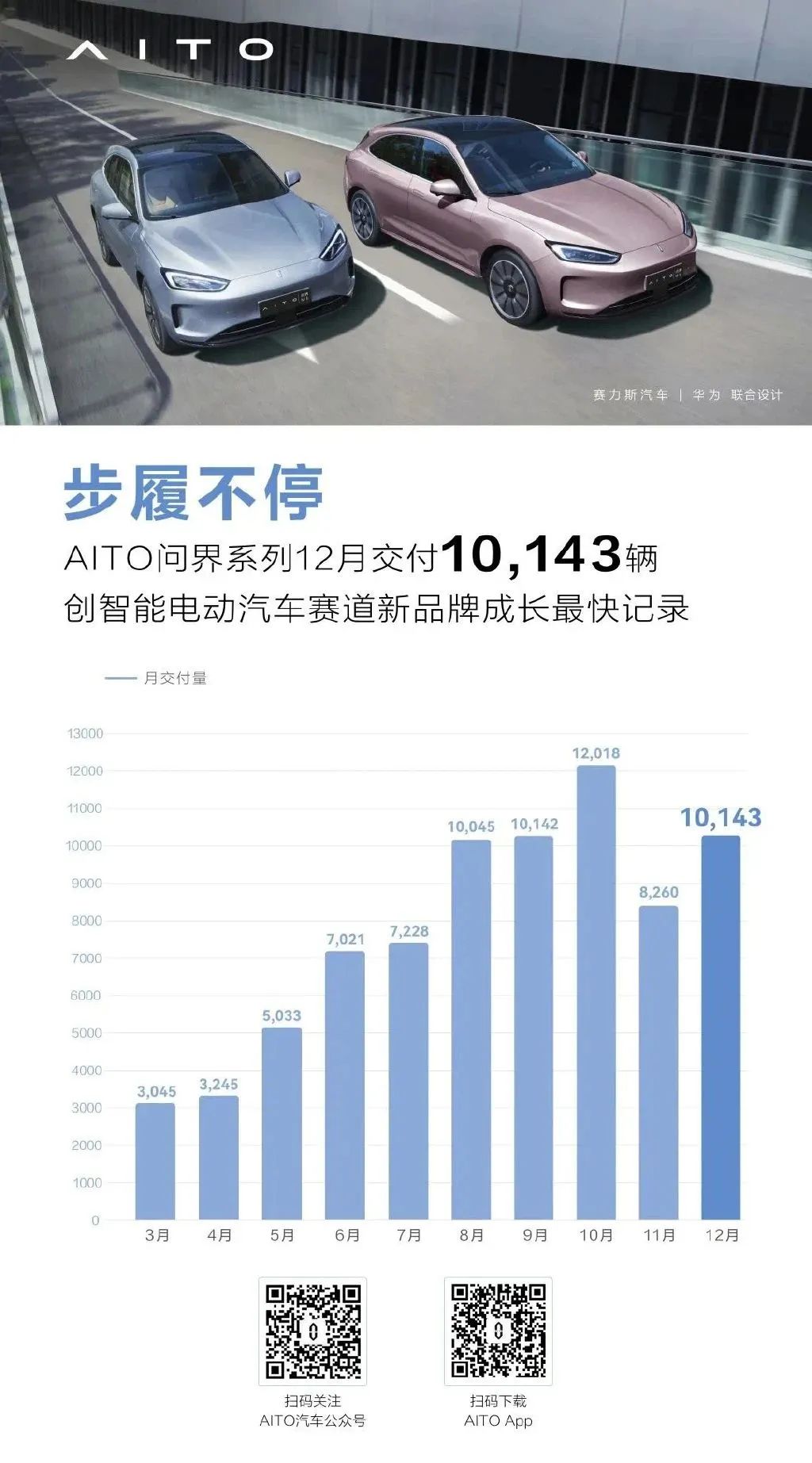自AITO問界系列面世以來,銷量一路狂飆,實現(xiàn)連續(xù)三個月交付量破萬。