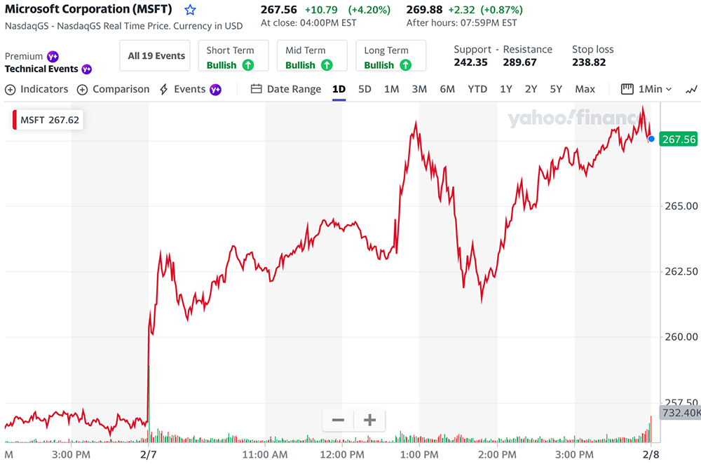 一天之間,微軟市值狂飆803億美元(折合約5446億人民幣),相當于漲了0.5個寧德時代、1.5個美的、2個小米的市值。