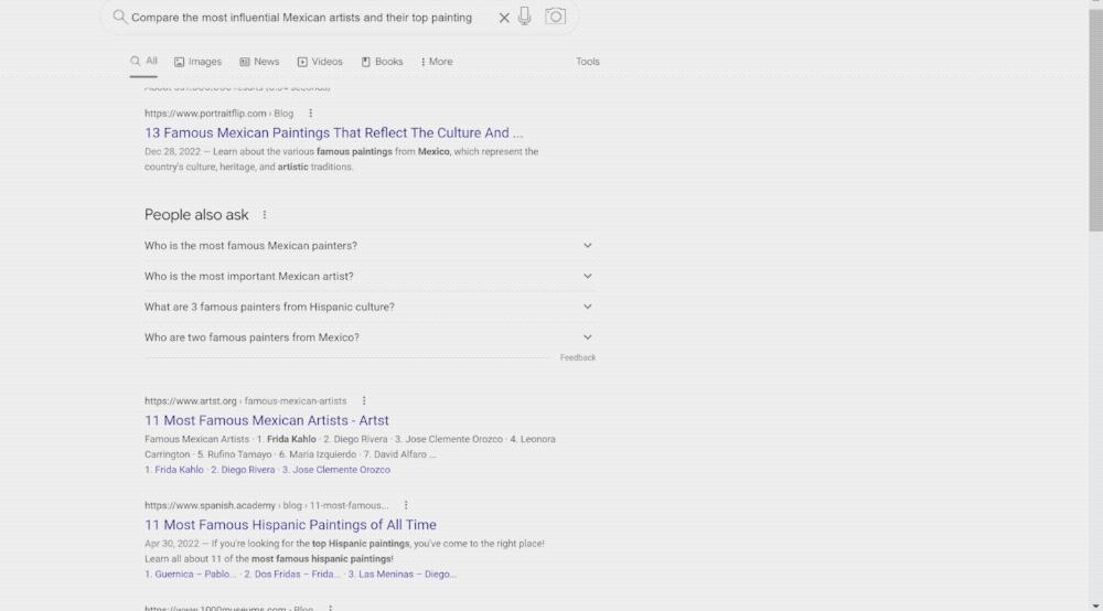 如果你輸入“最有影響力的墨西哥作家和他們的作品”,在傳統(tǒng)搜索引擎,你需要滾動鼠標瀏覽頁面,消耗時間和腦力,在浩如煙海的鏈接中做出篩選。