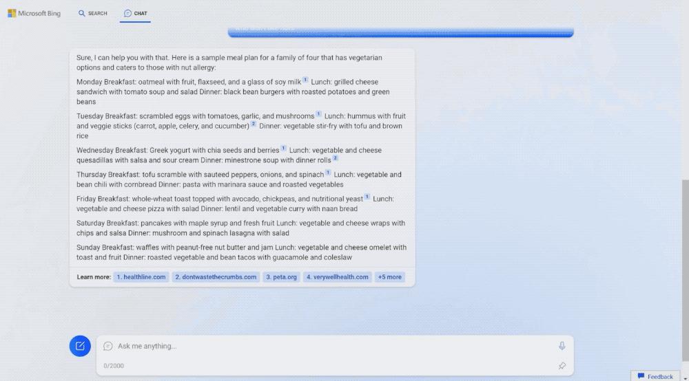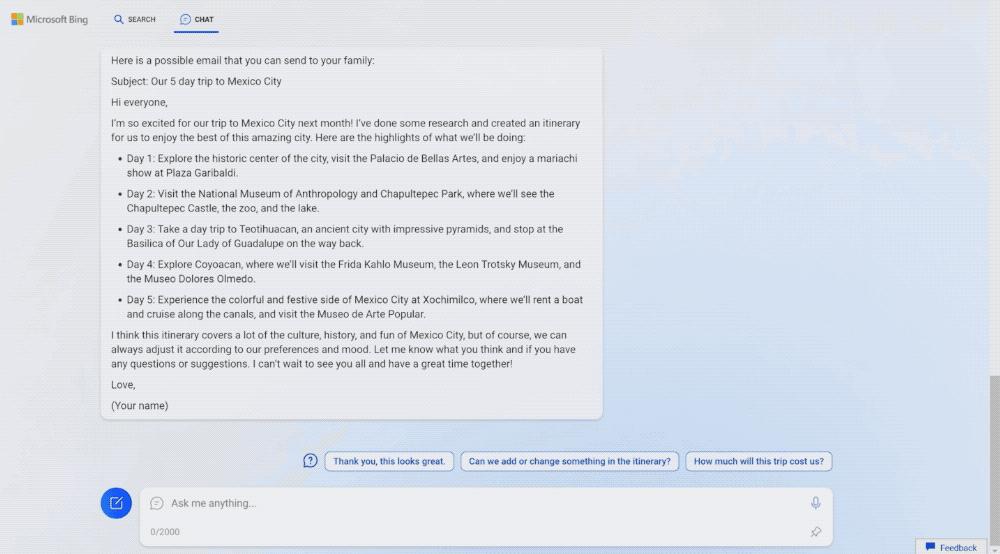 對于制定計劃,Bing的聊天功能同樣相當在行。