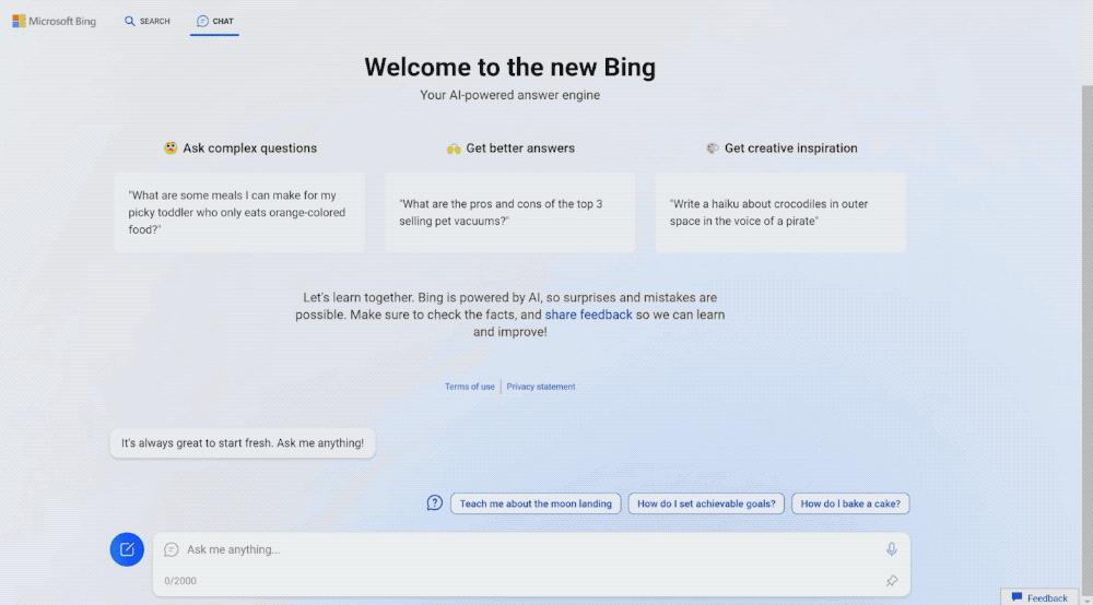 (4)新的用戶體驗。微軟正在重新構(gòu)想你與搜索、瀏覽器和聊天的交互方式,將它們整合到一個統(tǒng)一的體驗中。這將開啟一種全新的網(wǎng)絡(luò)交互方式。