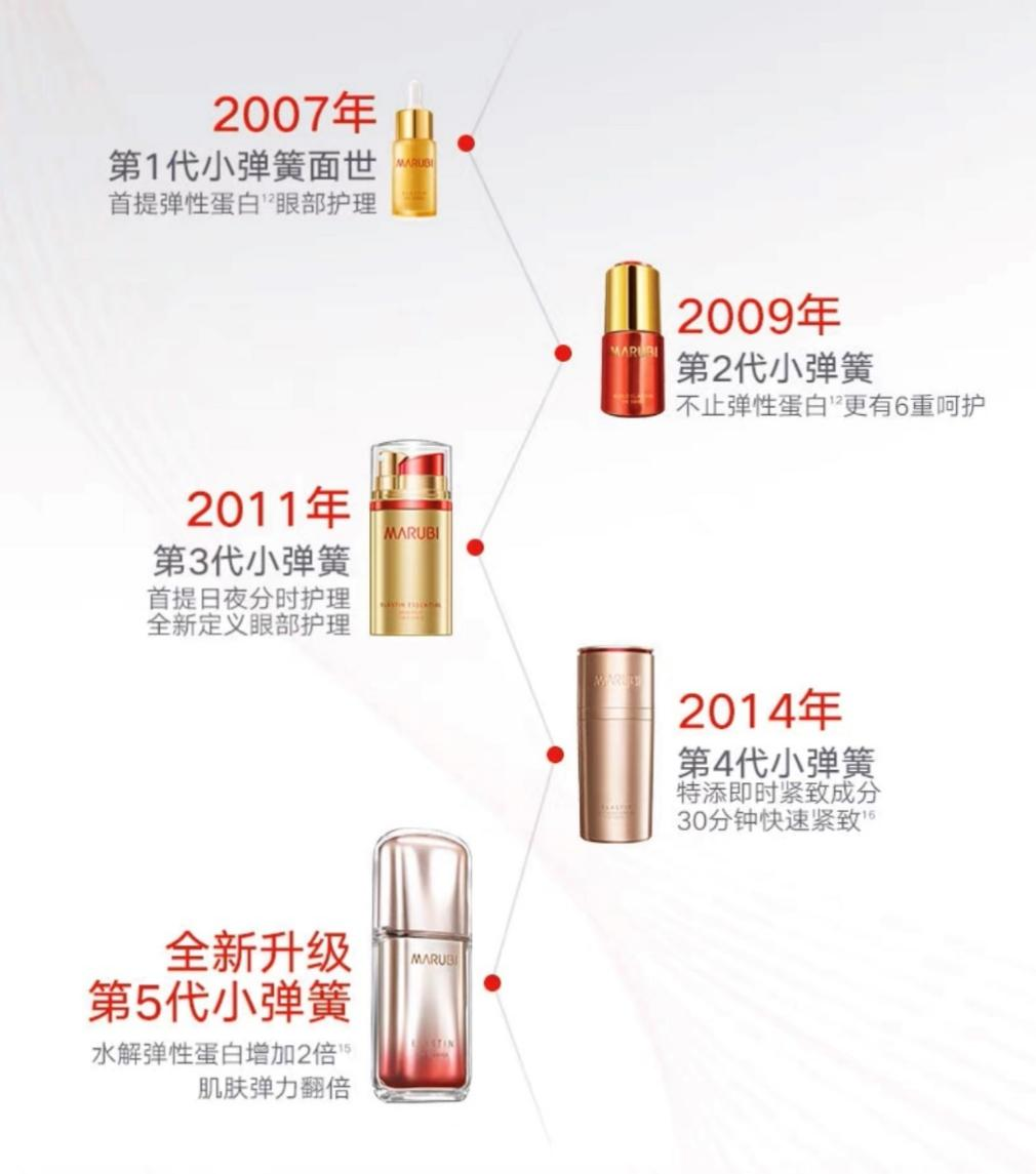 以小彈簧眼霜為例,自2007年面世以來,經(jīng)過15年的更迭,已進行4次升級。平均迭代時間超過3年。