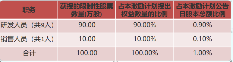 2021年3月27日,帝科股份披露《2021年限制性股票激勵(lì)計(jì)劃(草案)》稱,計(jì)劃向公司10名優(yōu)秀研發(fā)和銷售人員進(jìn)行股票激勵(lì)。擬授予激勵(lì)對(duì)象的限制性股票數(shù)量為100萬(wàn)股,占公告日公司股本總額的1.00%。
