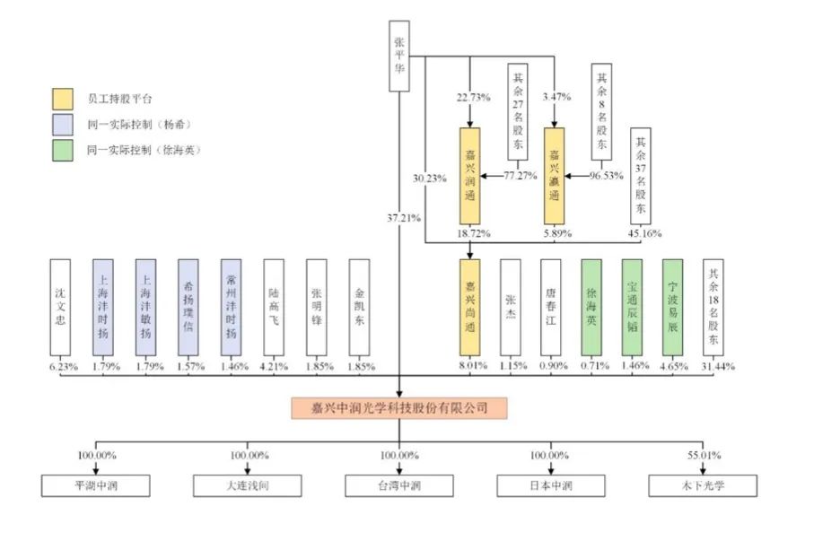2013年7月,朱框吉分別將其所持中熙光學(xué)股權(quán)轉(zhuǎn)讓給沈志妹、劉璇、顧銀龍、金凱東和張明鋒;潘劍芳將其所持中熙光學(xué)股權(quán)轉(zhuǎn)讓給劉璇。值得注意的是,當(dāng)時張平華與沈志妹、陸高飛與劉璇存在婚姻關(guān)系。