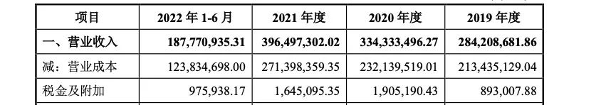 2019年、2020年、2021年和2022年上半年,中潤光學(xué)的營收分別為2.84億元、3.34億元、3.96億元和1.88億元;凈利潤分別為2172.09萬元、2624.33萬元、3552.28萬元和1916.50萬元;扣非后凈利潤分別為399.15萬元、2303.84萬元、3215.20萬元和1580.27萬元。